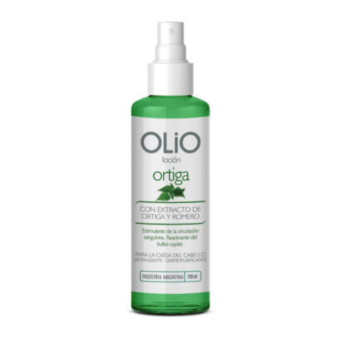 La Loción de Ortiga OLIO es un tratamiento intensivo para la caída del cabello. Estimula la circulación sanguínea en los poros del cuero cabelludo. Reactiva el bulbo capilar. Es dermopurificante, estimulante y reafirmante de las funciones capilares